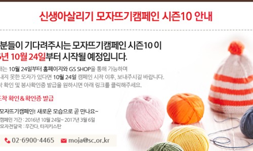 ¸ðÀÚ¶ß±â·Î Ãë¹Ìµµ °®°í »ý¸íÀ» ±¸ÇÏ´Â ÀÏÀÌ´Ù. ¿Ï¼ºµÈ ¸ðÀÚ´Â À§ÀÇ ¼³¸í´ë·Î º¸³»¸é µÈ´Ù. ¿À´Â 10¿ù 24ÀÏ¿¡ ¸ðÀÚ¶ß±âÄ·ÆäÀÎ ½ÃÁð10ÀÌ ½ÃÀÛÇÏ´Ï ¸¹Àº Âü¿©¸¦ ¹Ù¶õ´Ù.
